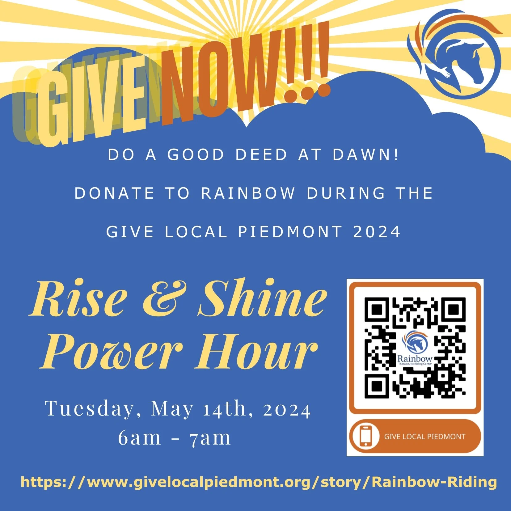 GOOD MORNING! WAKE UP, SMELL THE COFFEE, AND DIG DEEP AT DAWN TO HELP RAINBOW MEET TODAY'S FUNDRAISING TARGET OF $15,000 ON GIVE LOCAL PIEDMONT DAY!